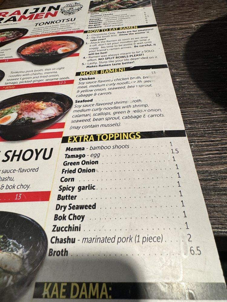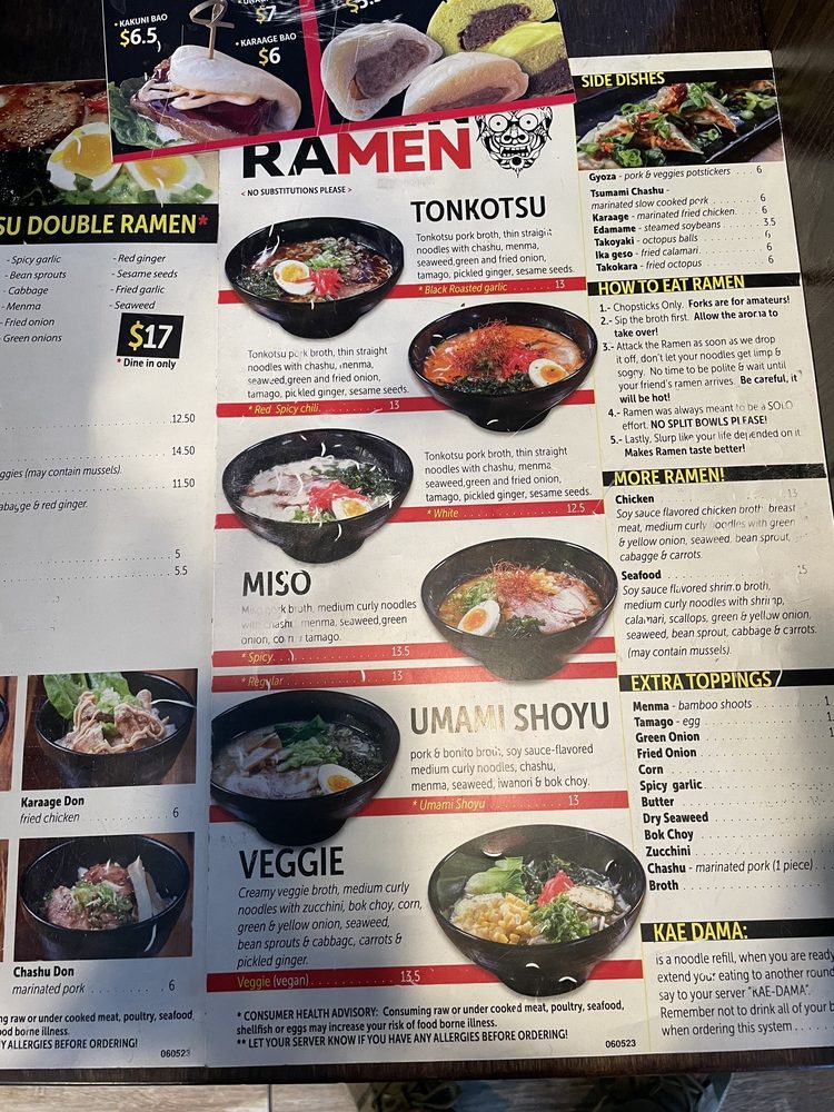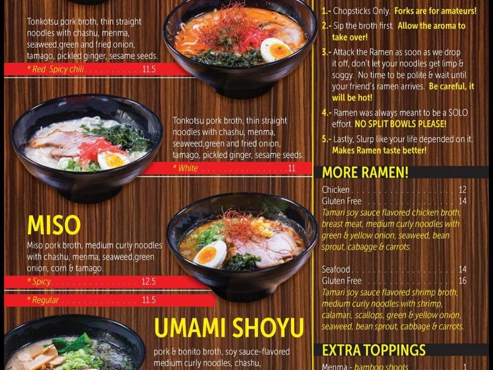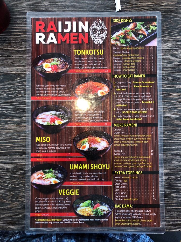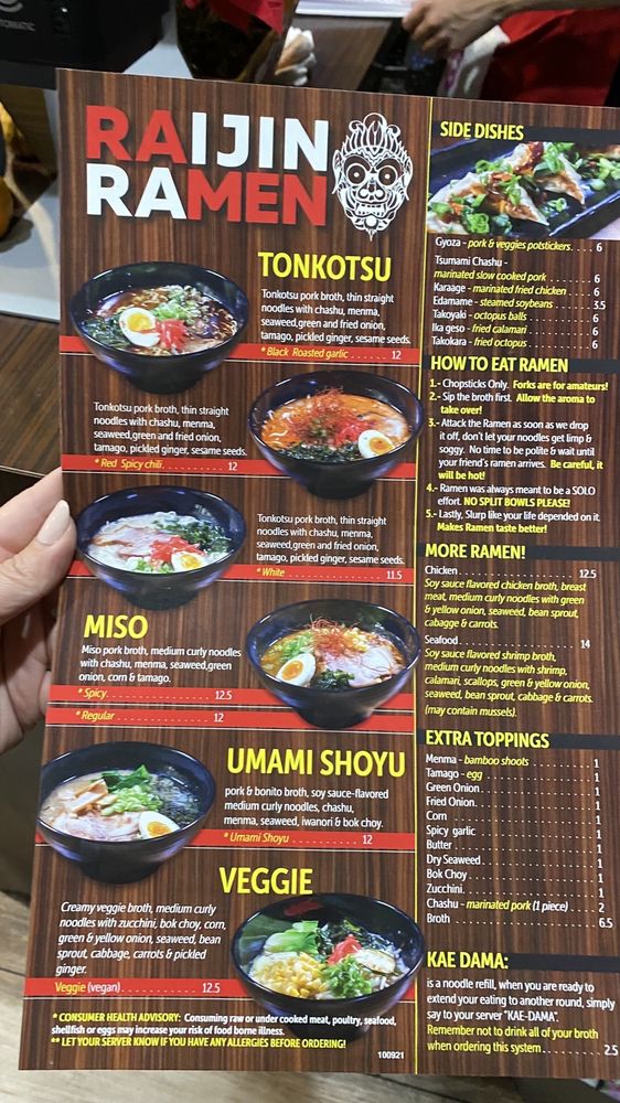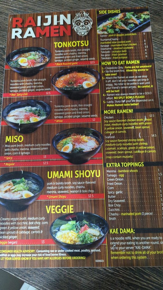 Raijin Ramen in Tucson, AZ offers an extensive menu with various options tailored to different dietary preferences such as pescatarian, soy-free, vegan, and vegetarian. Customers rave about the generous portion sizes, reasonable prices, and exceptional service. The Tonkatsu ramen, with options for added toppings like seaweed, green onions, pork belly, and bamboo chutes, receives high praise. The spicy tonkotsu and black garlic blend is recommended for spicy food enthusiasts. With a cozy and welcoming ambiance, Raijin Ramen provides a convenient drive-thru option alongside indoor and outdoor seating. While some customers note occasional service delays during busy periods, the overall consensus is that Raijin Ramen offers top-notch ramen dishes worth returning for.